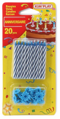 Kim'Play - 612 - Décoration - 20 Bougies Bleu + 20 Bobèches